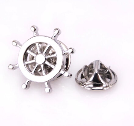 Elegantná ozdoba do chlopne v tvare kormidla. Brošňa krásne doplní a oživí vaše sako alebo kravatu, ale aj čiapku alebo šál. Brošňa sa zapína klipom zo zadnej strany.
